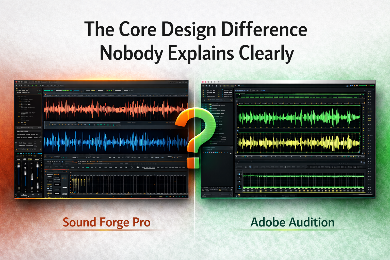 This one is trickier than Sound Forge Pro vs Audacity. Both tools cost money. Both run on Windows and Mac (well, Audition does — more on Sound Forge Pro and Mac in a moment). Both do noise reduction, mastering, and waveform editing. At first glance they look like direct competitors for the same user.